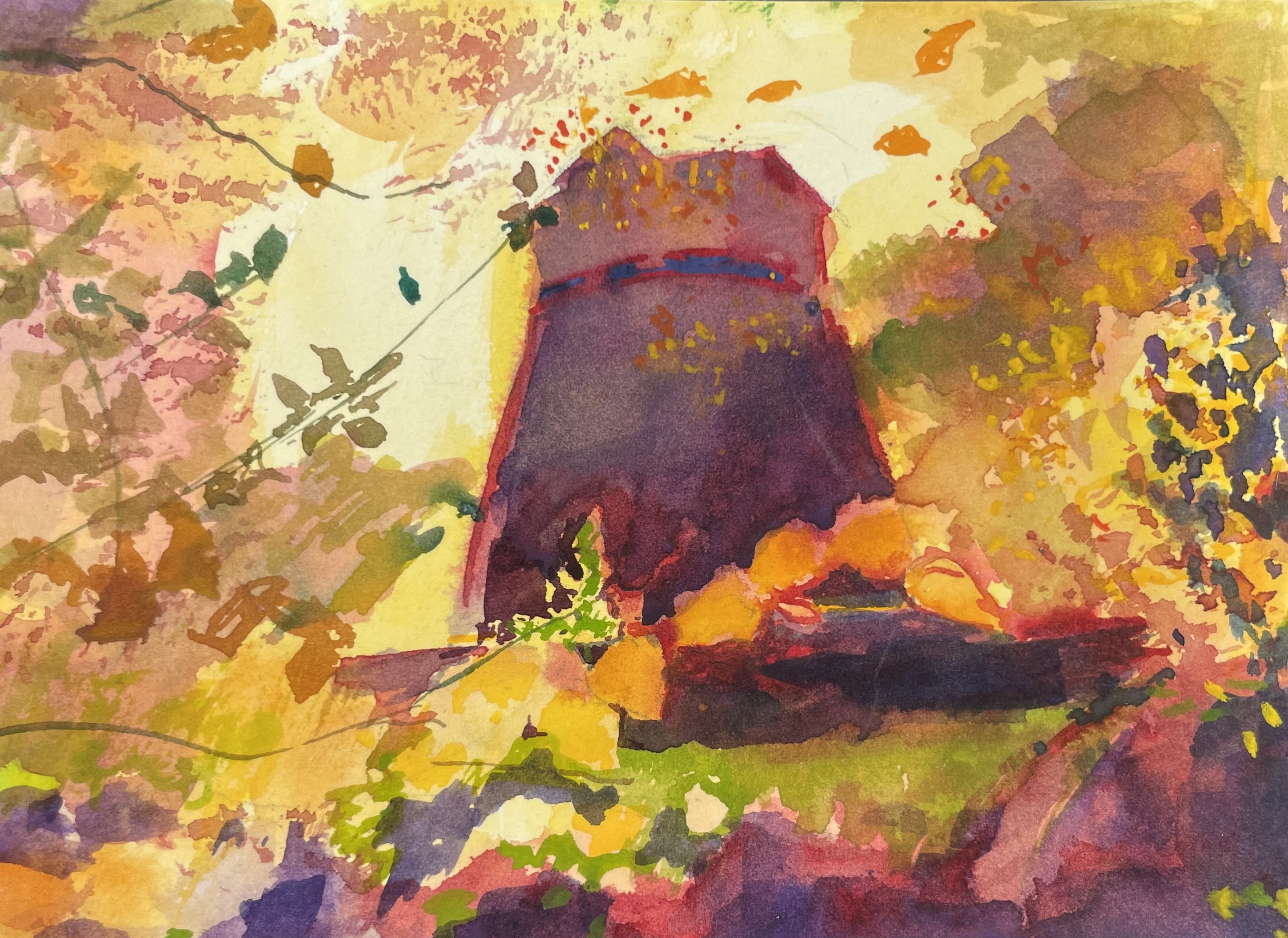 Windmill, East Knoyle, Watercolour on Paper, 19 x 14 cm, (unframed).
